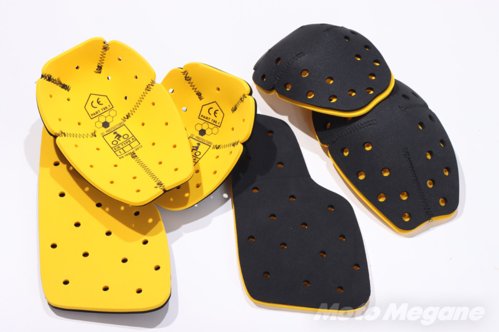 別売りのCE規格パッドと標準パッドを交換することで更に護りを固めることができる。