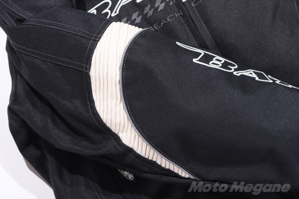 とはいえレザージャケットよりは、軽さも着心地も格段に良好である。ライディングフォームを取ればすぐにライダーに最適な立体裁断となっていることに気づくことができるはずだ。