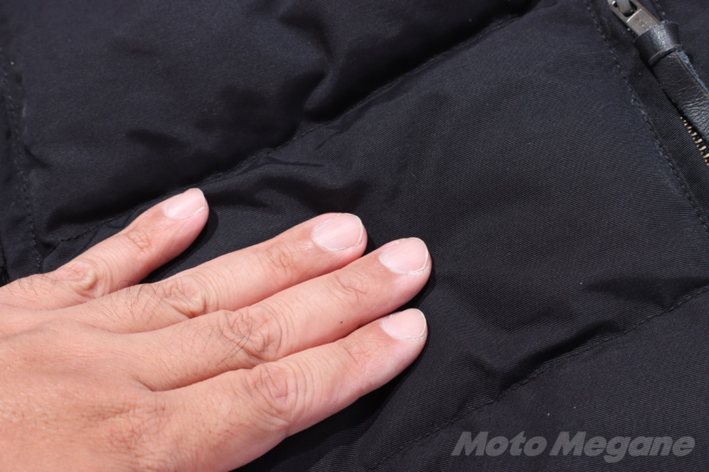 ダウンジャケットのような軽く動きやすいフィーリングは、バイク以外で着るときも大きな魅力である。