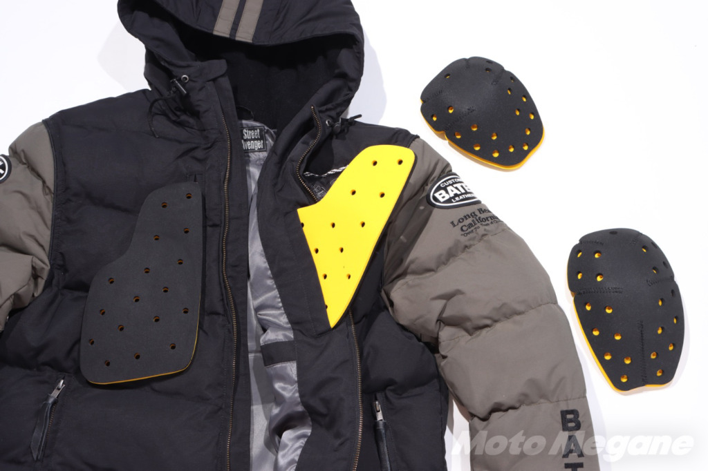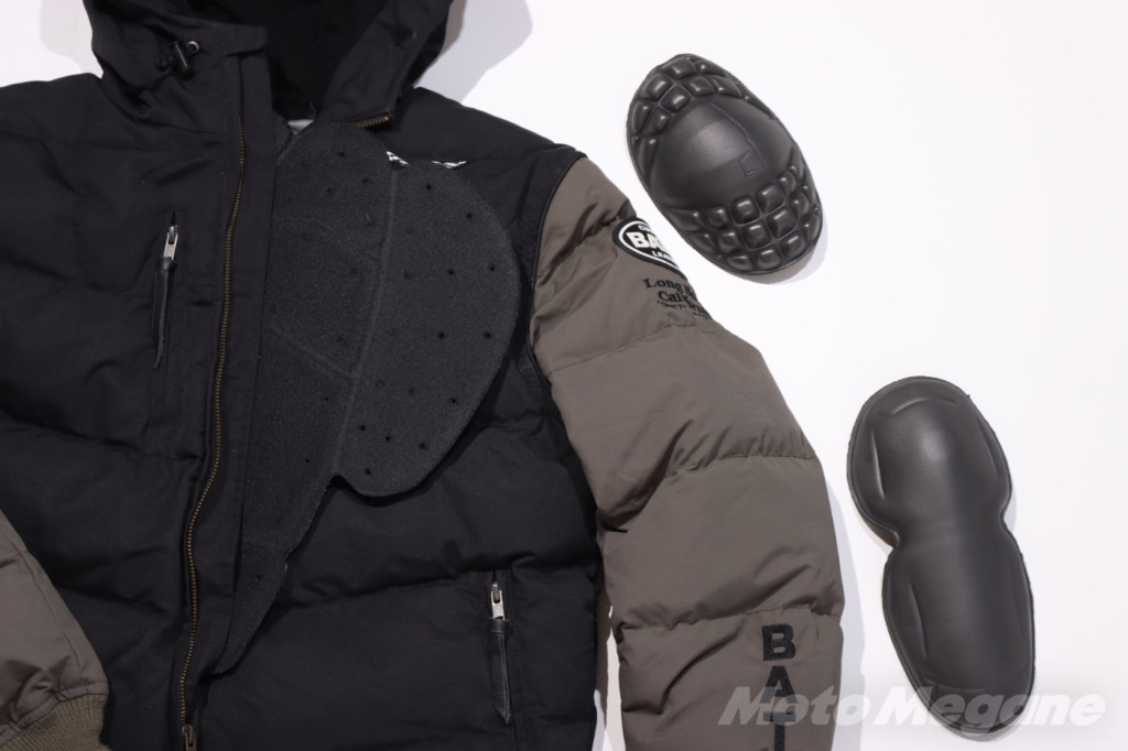 軽く保温性抜群なダウンジャケットは冬場のマストアイテムである。しかし、プロテクターが無かったり、水濡れや手入れに気を遣う必要があるので、ライディングウェアとして最適とは言い難い。