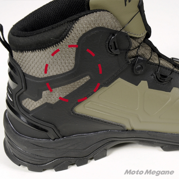 くるぶしを守るインナーカップが内蔵。踵には視認性を高める反射素材を採用。