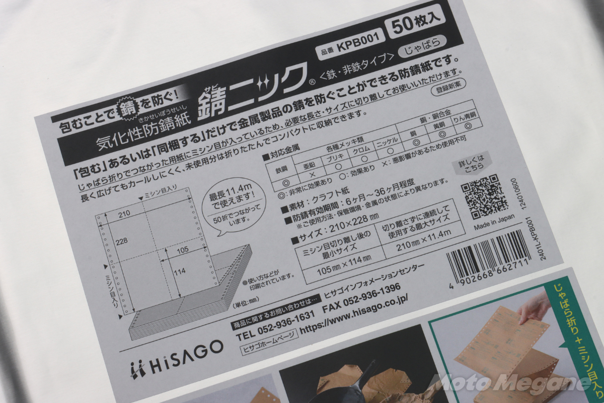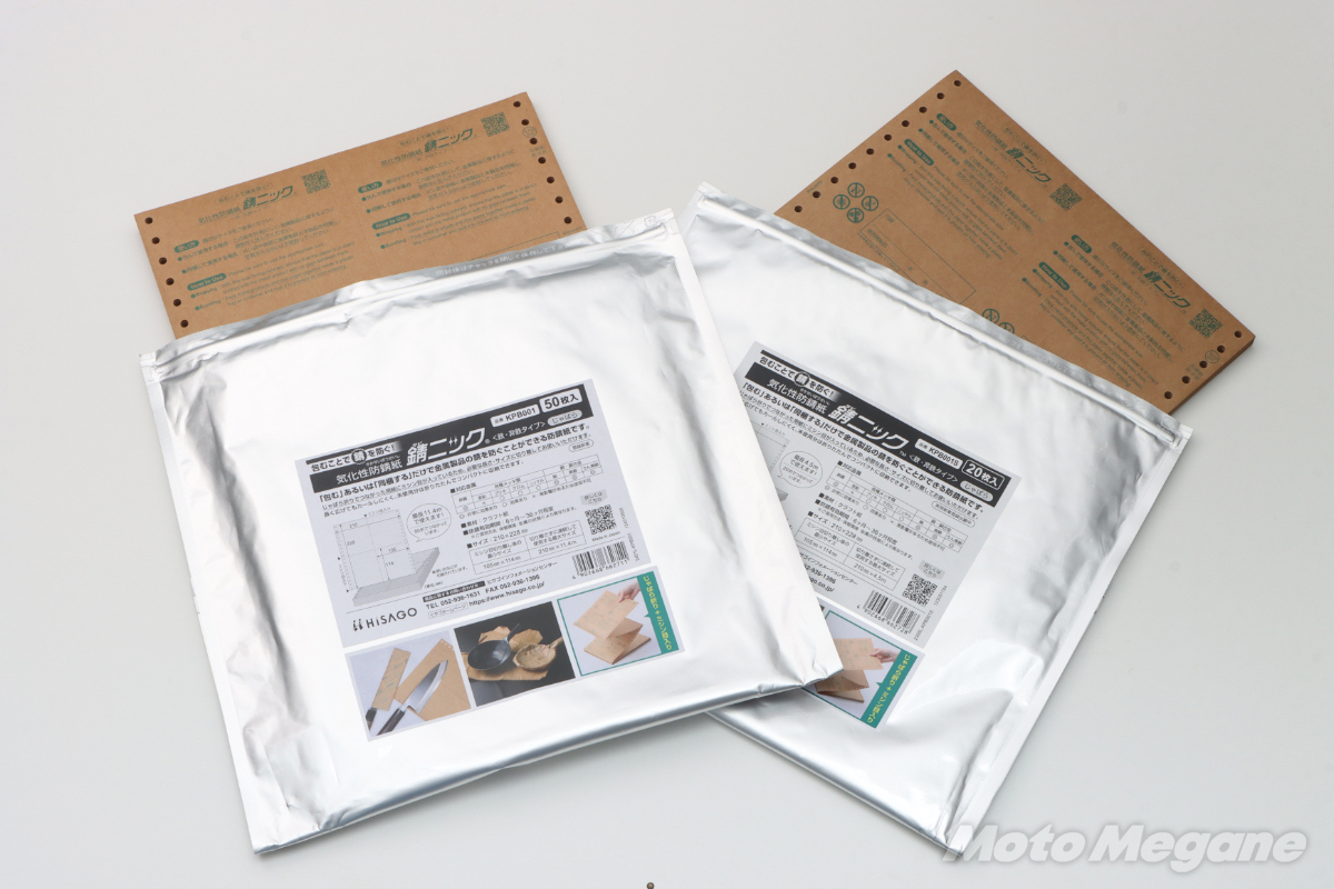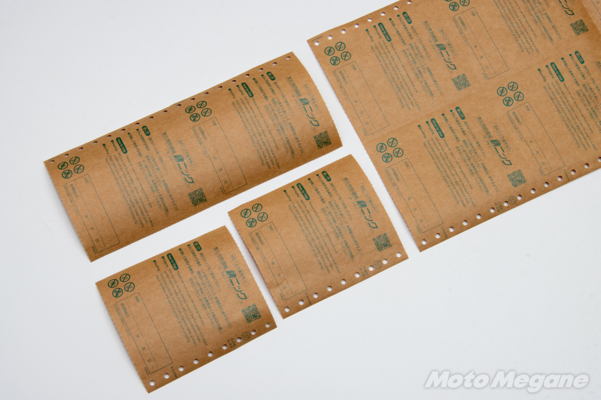そんな防錆紙に目を付けたのが伝票やラベルなどビジネスシーンで活躍する紙製品を取り扱うヒサゴ株式会社。様々な紙製品を取り扱う同社が、この防錆紙をバイクユーザーをはじめ一般家庭で使いやすいようにリデザインしたのが「錆ニック」なのである。