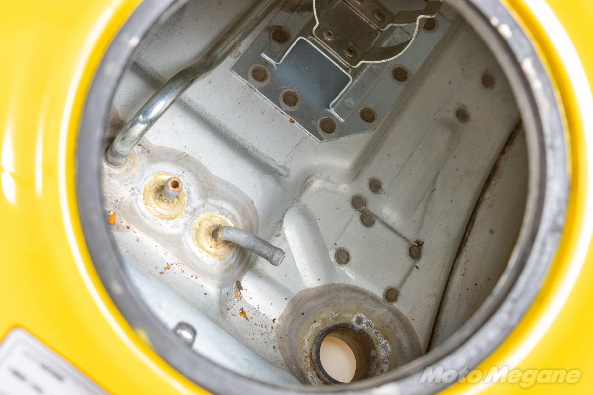 燃料タンクは外側はペイントされていて錆に強いが、内側が非常に錆びやすい。錆びればガソリンに錆の粉が混入するので非常に厄介だ。