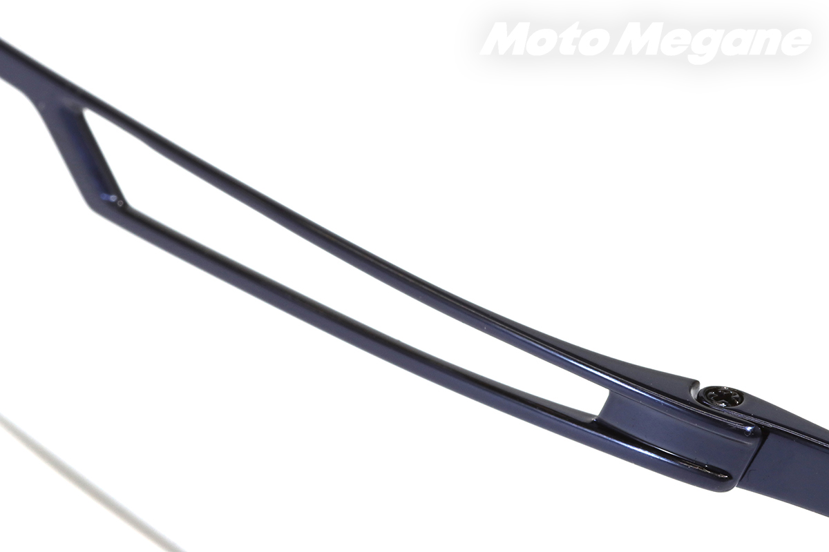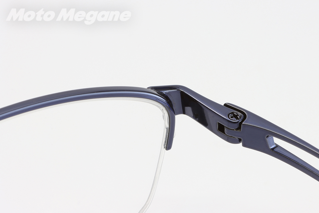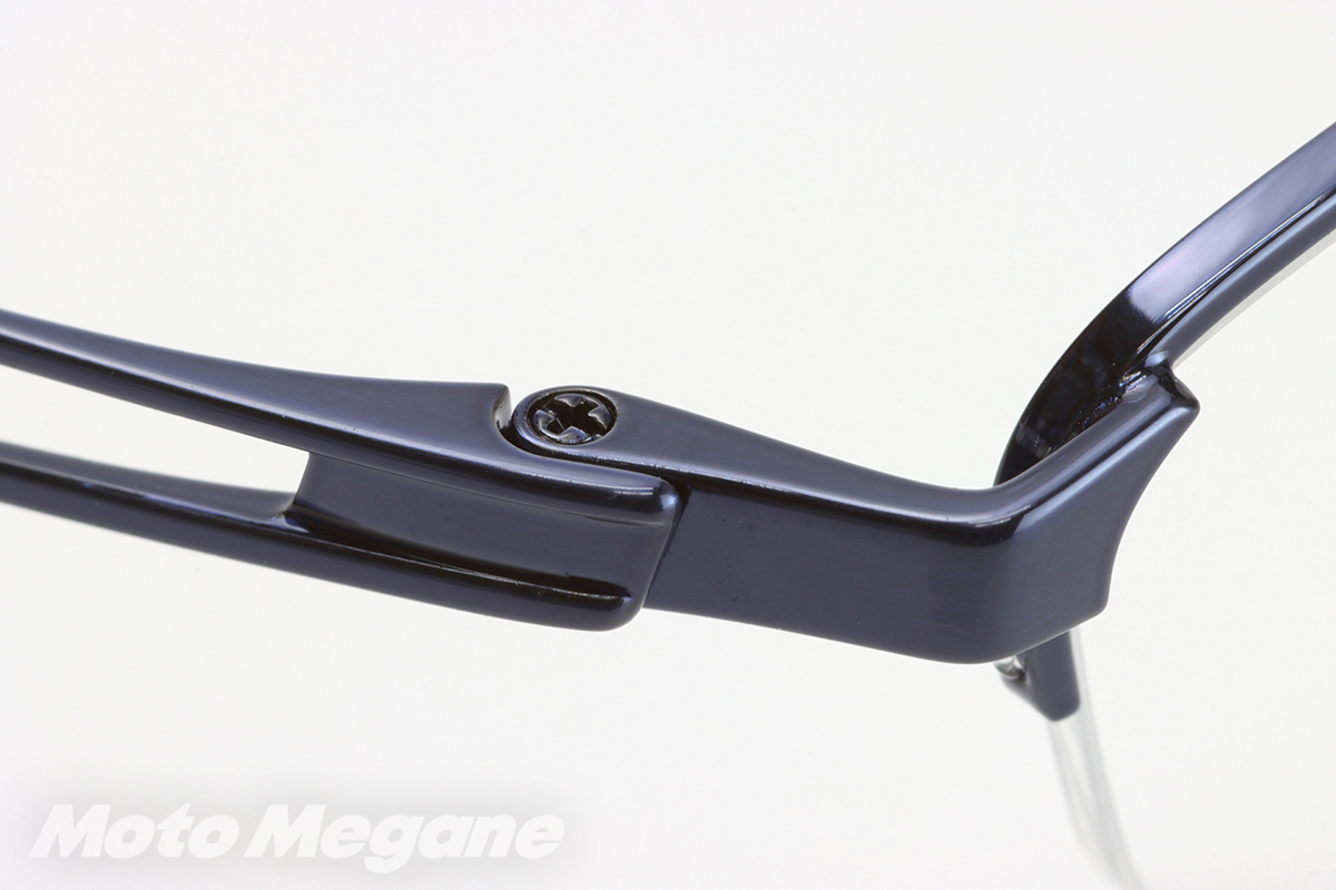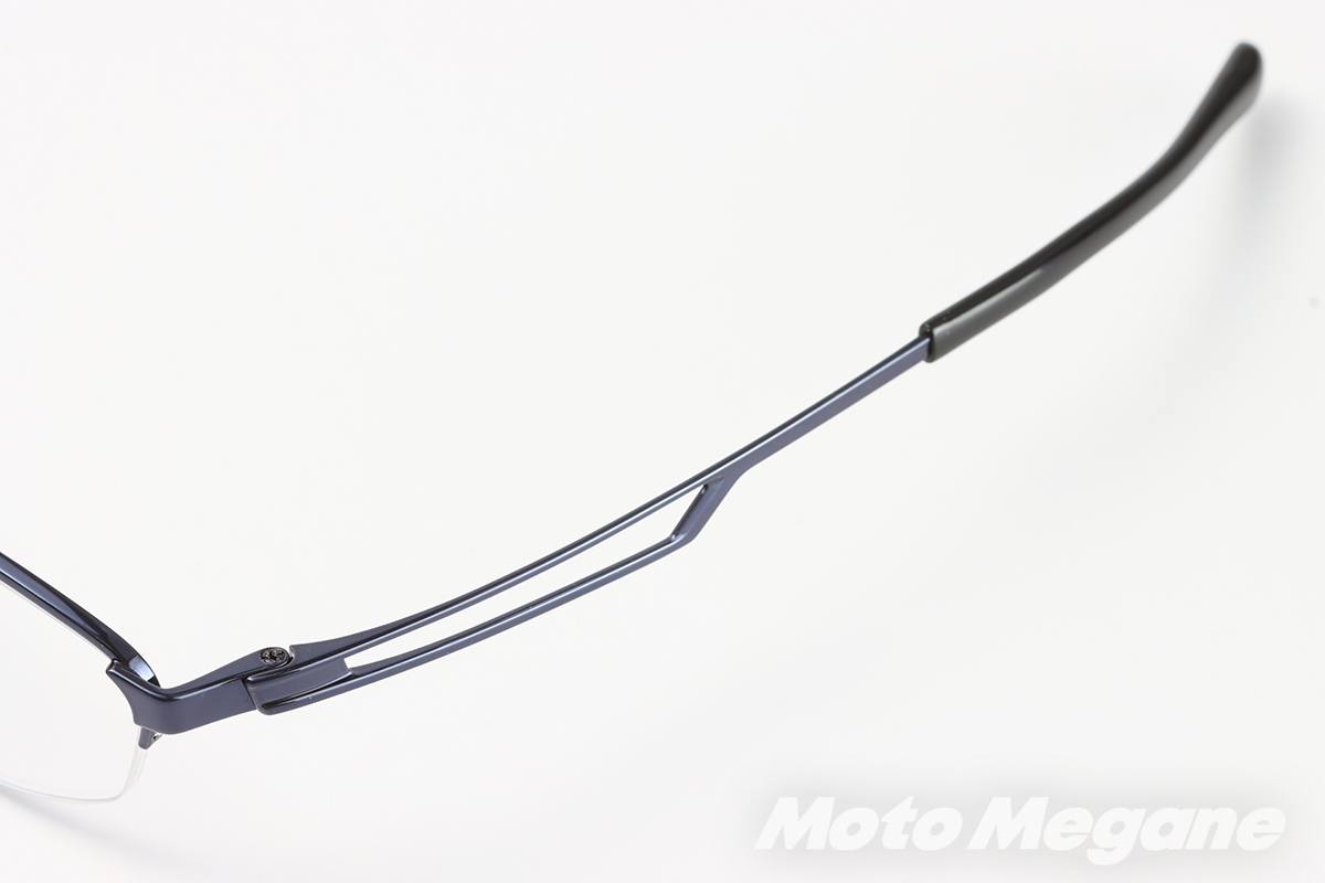 テンプルには、しなやかさと形状記憶特性も持ったβチタンを素材とすることで、ストレスフリーなライディングを実現している。