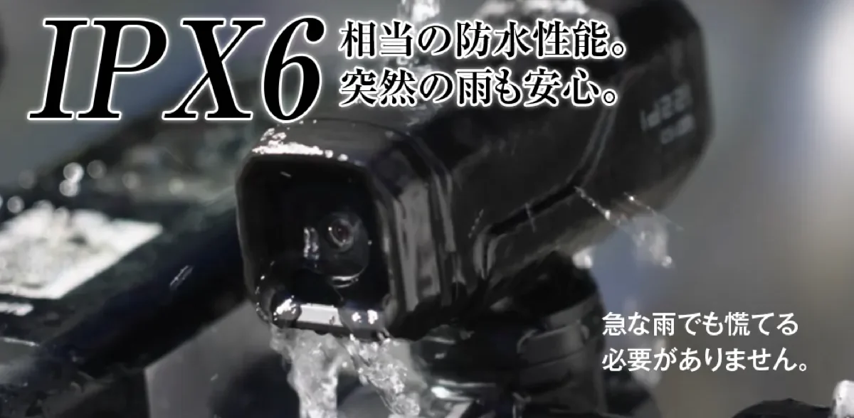 ちなみにIPX6とは「全方位からの強い暴噴水から保護」が認められているという証で、つまりは荒れ狂う暴風雨の中をバイクで走っても…きちんとその惨状を映像として記録してくれるってことです♪