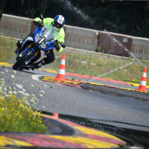 ウエットコンディションでは、長い溝が雨水の排出を促すことで素早いウォームアップに貢献し、グリップ力も素早く発揮される。さらに、リヤタイヤにはフルシリカのデュアルコンパウンドも採用し、濡れた路面でのリーン(コーナリング)時のグリップ力と高速走行時の安定性も実現している。