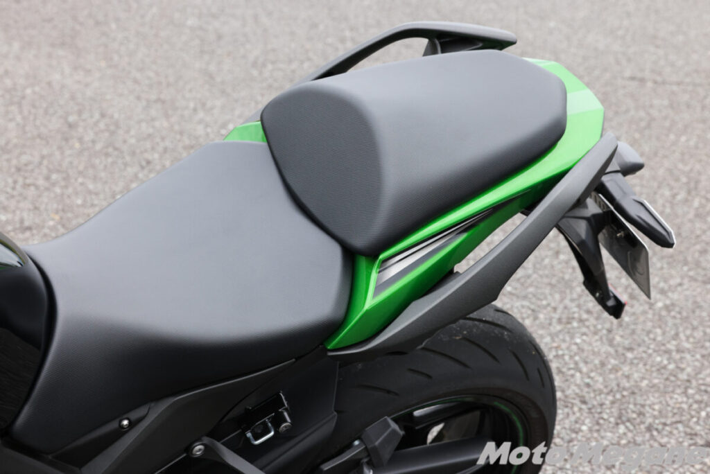 筆者が感動したシート。街乗りでもワインディングでも疲れづらく、そして滑りづらい。もちろんホールド性にも優れています。タンデムシートも厚みは十分です。