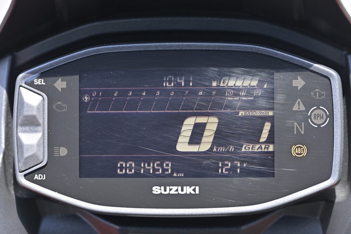 エンジンを始動するにはクラッチレバーを握ってスターターボタンを押すのだが、そのクラッチレバーの軽い操作性がまず好印象だった。そしてスターターボタンをワンプッシュすれば一定時間スターターモーターが回転し、エンジンは始動する(エンジンが始動するとスターターモーターは止まるスズキイージースタートシステム)。ギヤを1速に入れて、アイドリングから少しスロットルを開けてクラッチをつないでいくと、スルスルと前進していく。スロットル操作も軽く、エンジン回転の上昇に合わせて車体も加速していくが、そのスロットル操作と加速がスムーズなので、車重を感じず、車体の挙動が軽快に感じられるのだ。