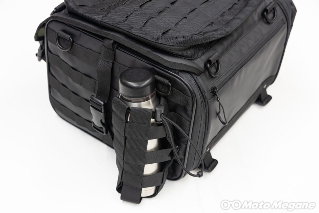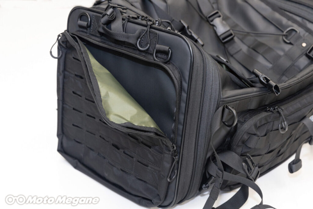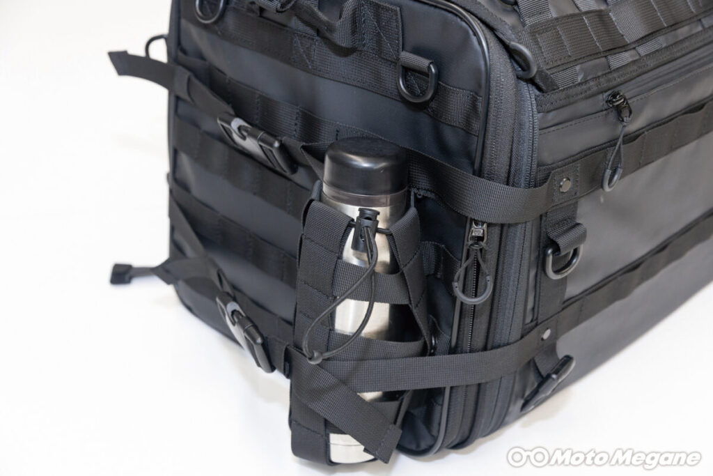また容量をアップすることができるので、荷物が増えても安心。モールシステムの採用でアクセサリー類も取り付けが可能。高い機能性を持つツーリングバッグだ。