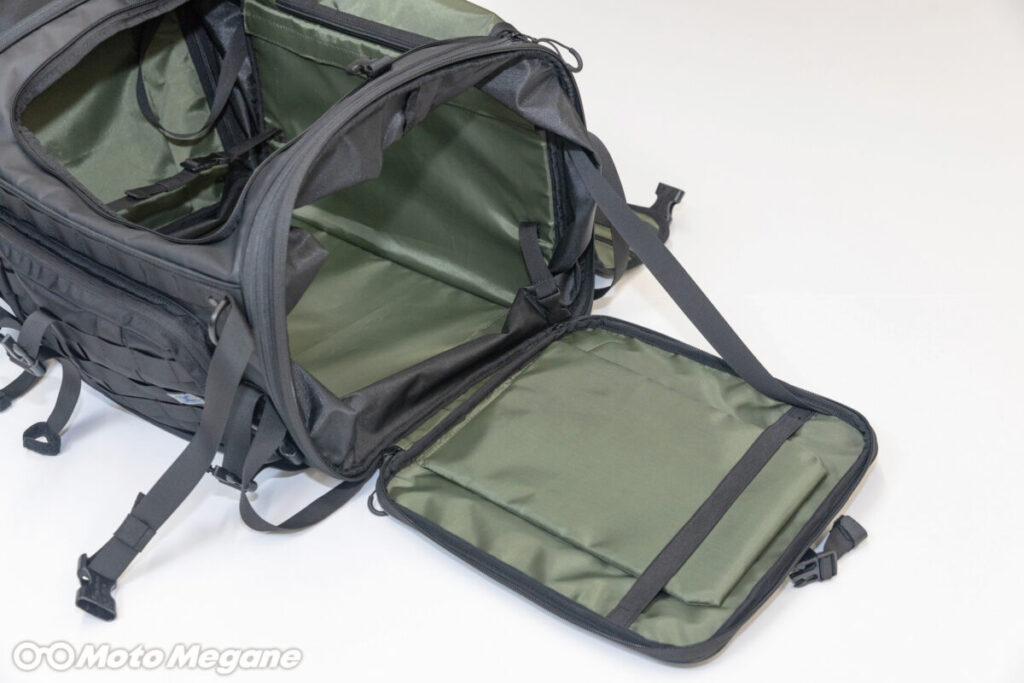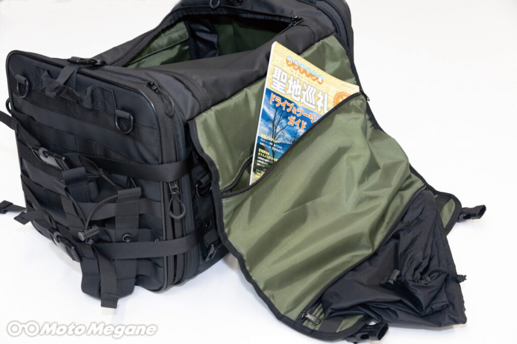 拡張性が詰まったメインフラップは3.5ℓの容量を確保している。