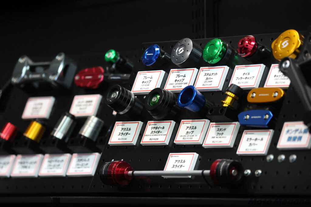 現在の製品ラインアップは、ドライカーボン素材を用いた外装パーツと、アルミビレット(削り出し)によるレバーやステップバーやキャップ類などの機能パーツが中心。いずれも、高品質でありながらクオリティに対してリーズナブルな価格設定となっている。