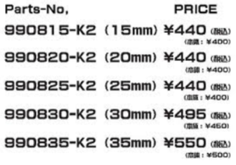 サイズはM6/M8の各15mm/20mm/25mm/30mm/35mmまでの5サイズ。