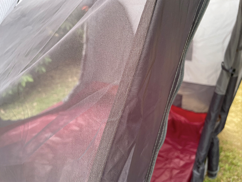 インナーテントの出入口と天井部はメッシュ仕様で蒸し暑さを軽減。