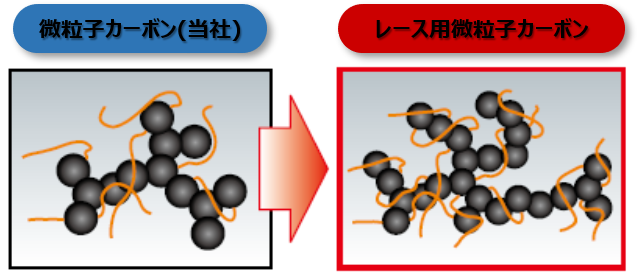 レース開発で培った最新の技術を用い、補強材にカーボンを使用したコンパウンドを採用し、従来品からカーボンブラックの含量を増加することでドライグリップ力を強化。また、通常の微粒子カーボンより粒子径が小さいレース用微粒子カーボンにより、ポリマーとの絡み付きが増え、発熱効率を向上させることでより優れたグリップ力を実現しています。さらに、ポリマーの変更や調整など、独自の配合で、より柔軟なコンパウンドにすることでウォームアップ性も向上しています。