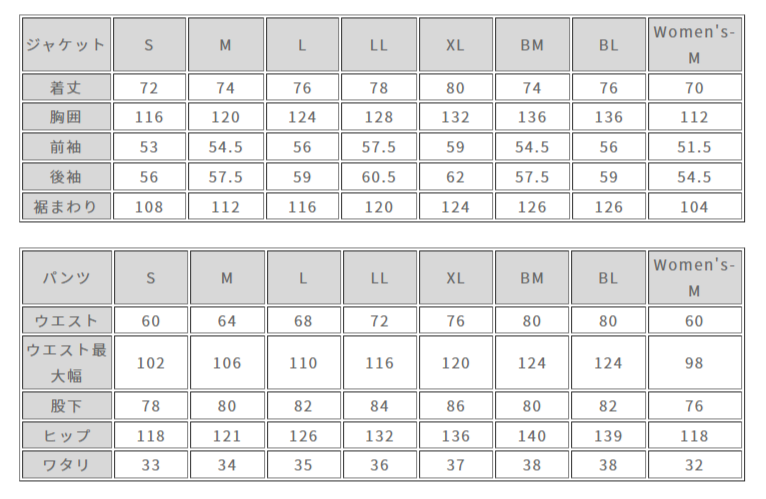 SIZE: S、M、L、LL、XL、BM、BL、WM(LD)