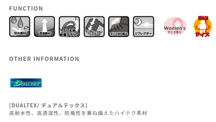 MATERIAL: 表地/ナイロン70Dデュアルテックス加工 襟裏/起毛トリコット