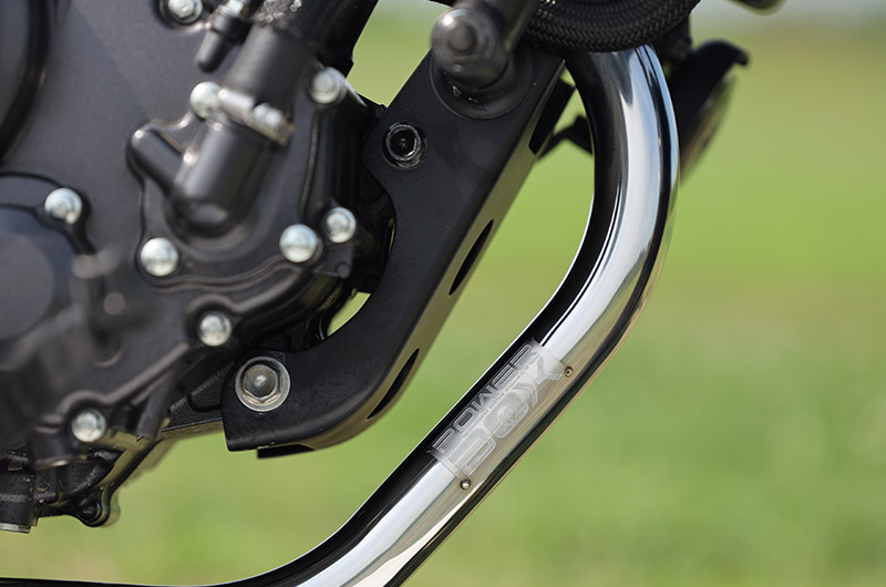 メインパイプの太さと長さ、秀逸なトルクラインを引き出すために微調整を繰り返して設定されたこのBOXの装着位置と容量から気持ちイー!が生まれる。