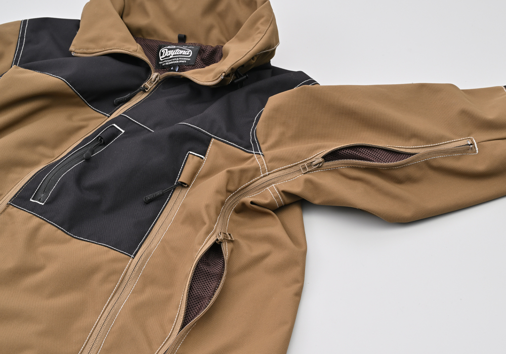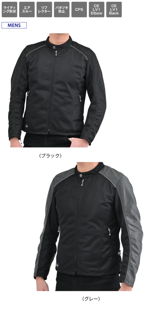 株式会社デイトナは、ライディングウェアDJ-003 MESH SINGLE RIDERS(メッシュシングルライダース)、DJ-002 AIR INTAKE PARKA(エアインテークパーカー)を発売した。フルメッシュ仕様で、真夏の快適性を求めたメッシュシングルライダースは26,400円。簡易防水、防風に加え、大型ベンチレーションファスナー搭載で通気性に優れたエアインテークパーカーは28,600円(いずれも税込)である。