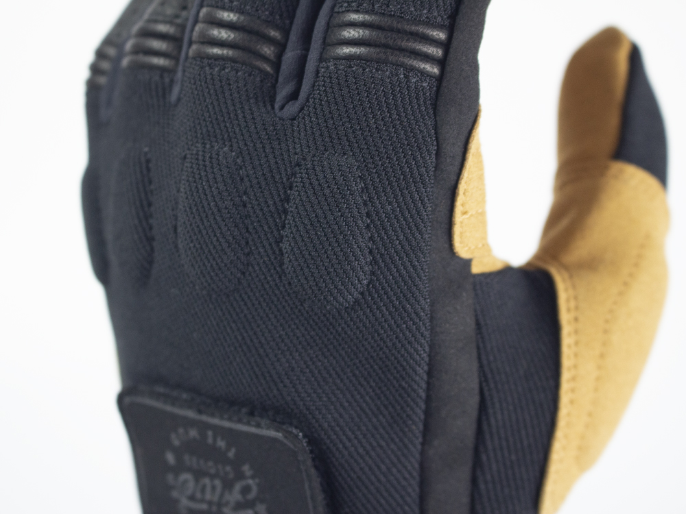 ナックル、パーム共に装着時の疲労感が少ないソフトプロテクションパッドを採用。小指と薬指には更にフルグレインレザーを配置した高耐久設計。