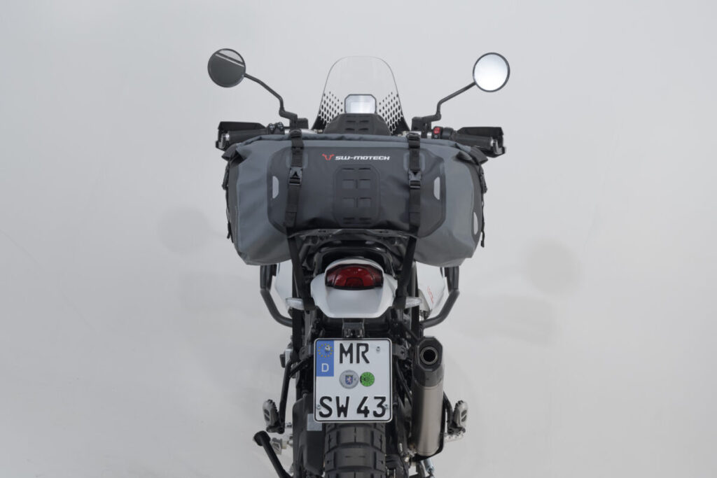 小型のドライバッグ 80 は、クラッシュバー、タンデムシート、またはキャリアやラックに取り付け可能。また、より大きなモデル((Drybag 350~) と連結したり、単にショルダーバッグとして使用することもできます。