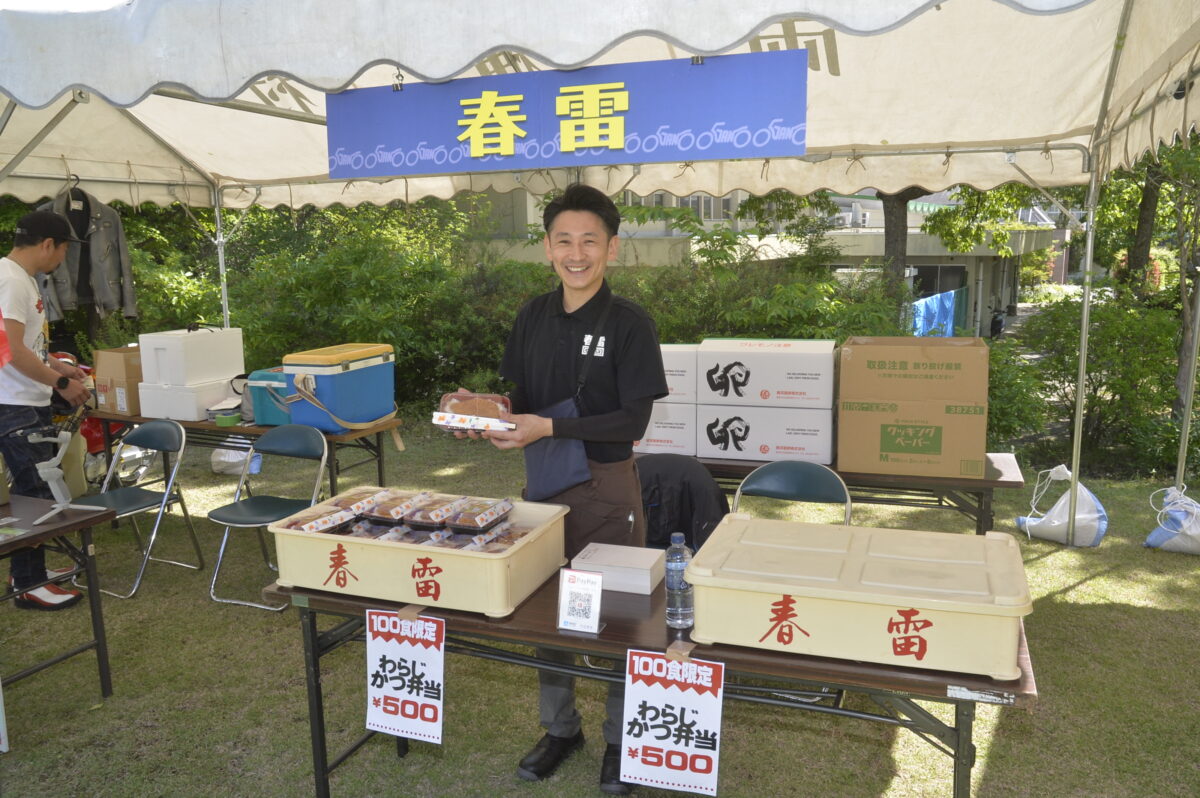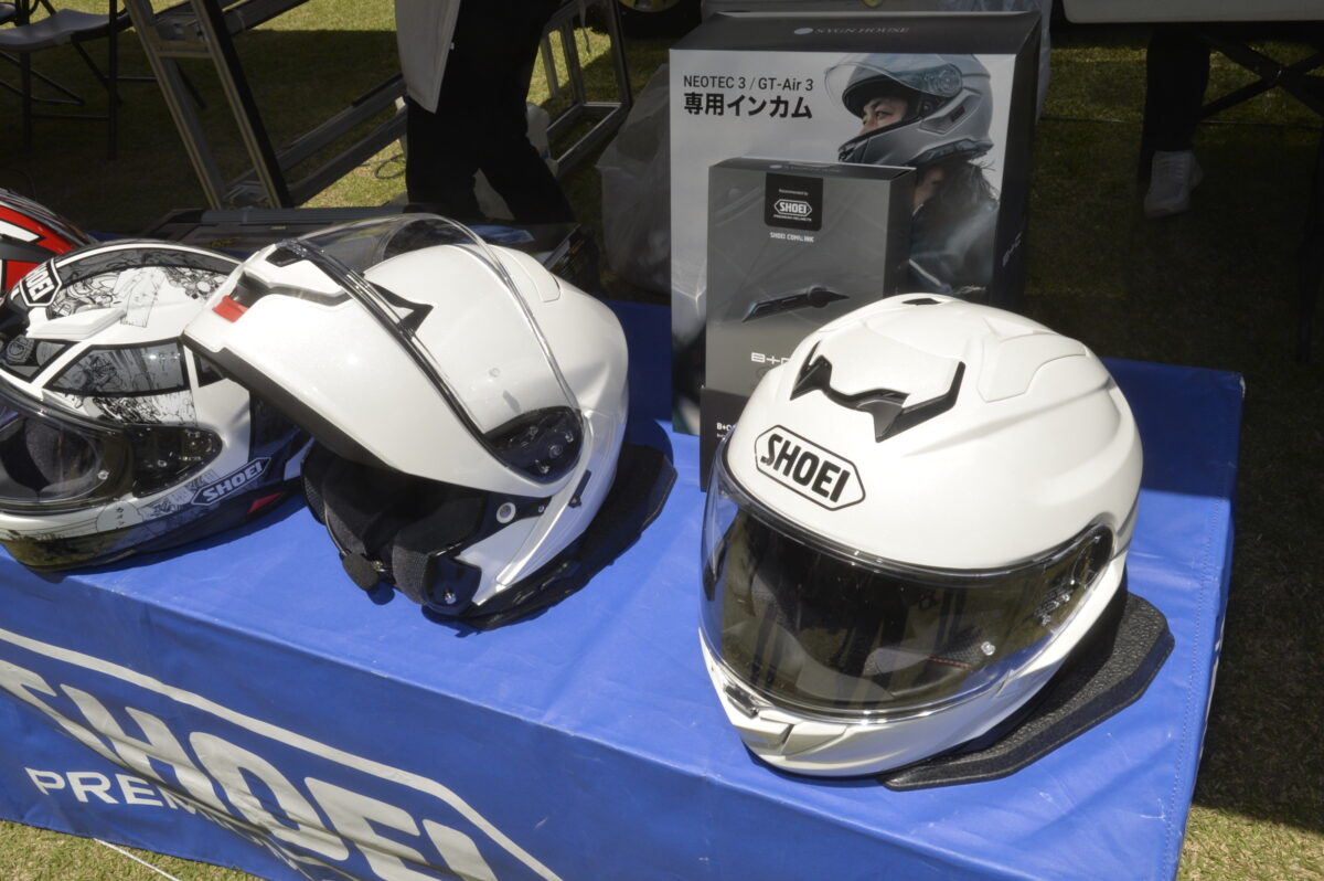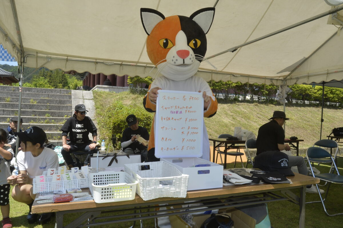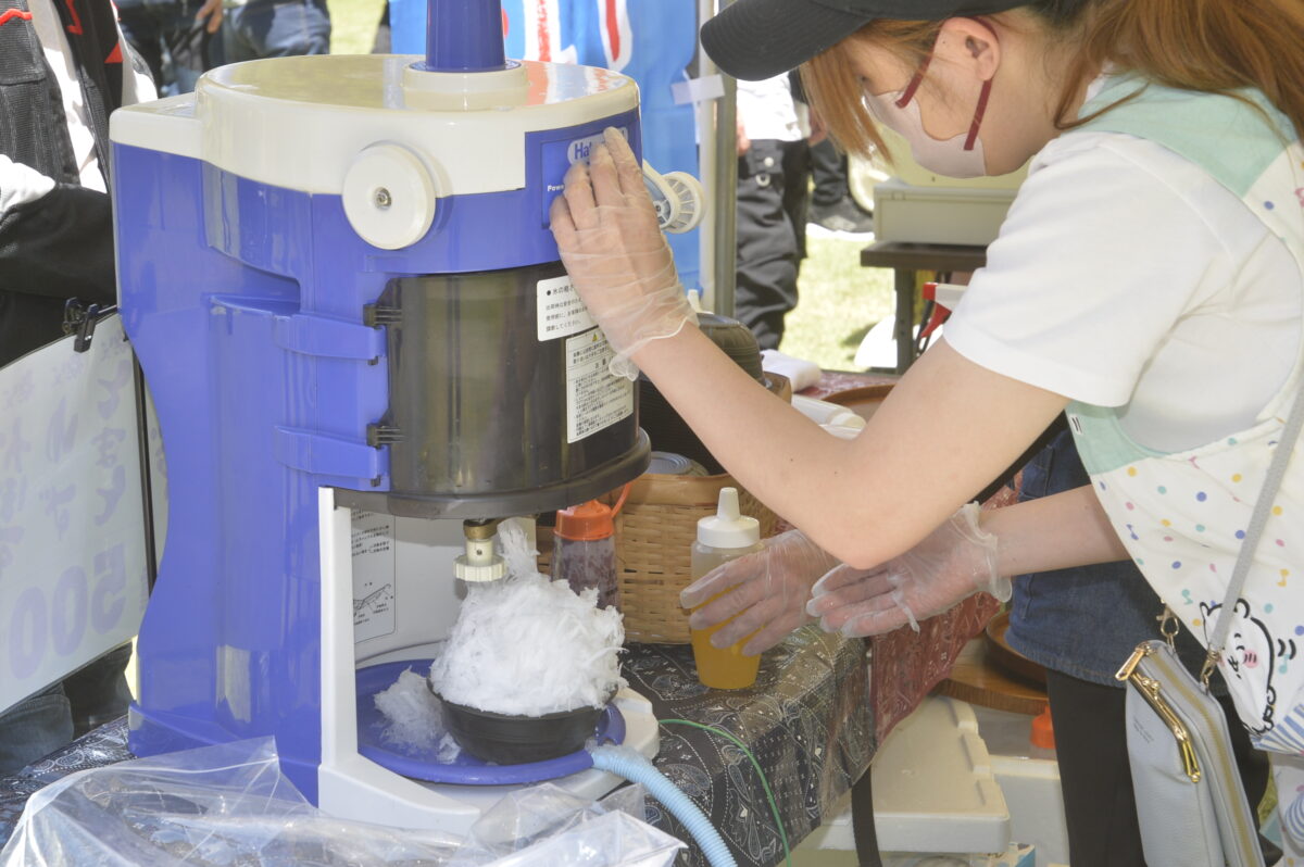 イベントステージの奥にある芝生スペースでは、バイク関連メーカー50社の出展ブースも用意され、お得なアイテムや掘り出し物の販売、小鹿野町の地元グルメ『わらじかつ』のお弁当、『毘沙門水』で作るかき氷を販売するフードコーナーも用意。購入した多くの用品を抱えたり、わらじかつ弁当やかき氷を味わうライダーの姿も目に付いた。