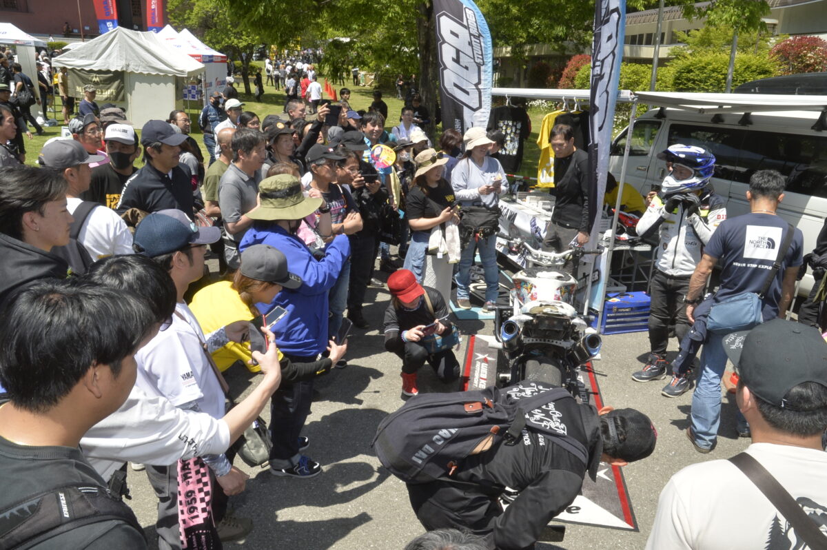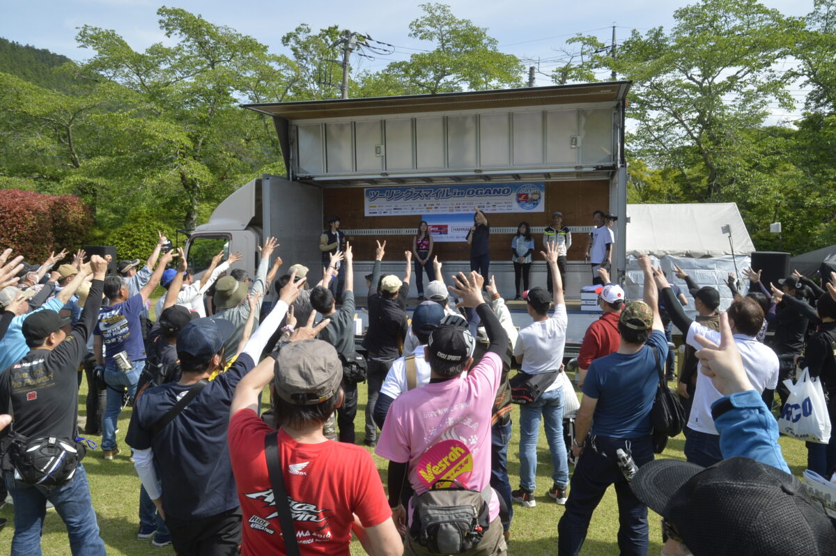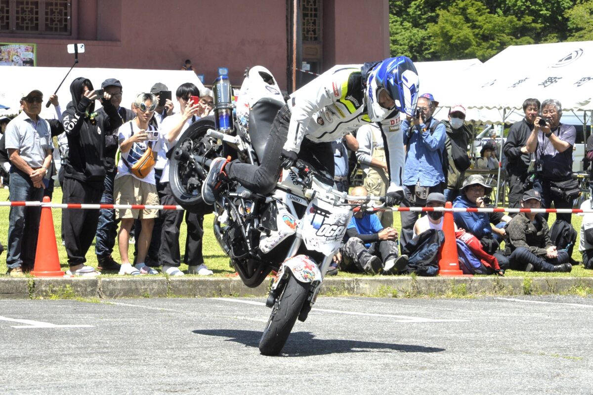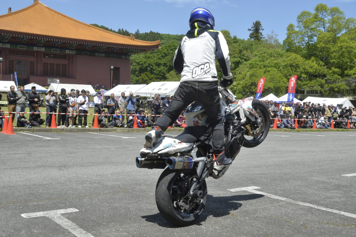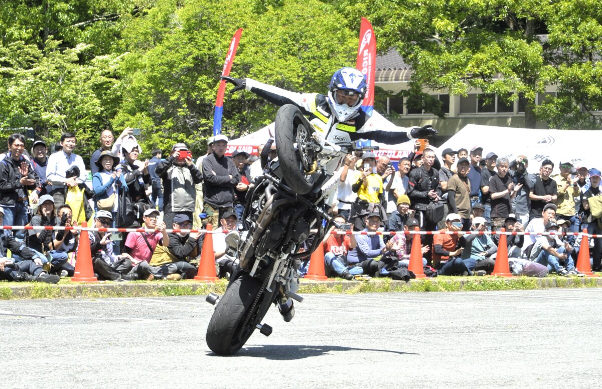 ステージイベントは秩父屋台囃子「新原太鼓連」の華やかなパフォーマンスで始まり、MCのバイク声優「難波祐香さん」とWRO(ウェルカムライダーズおがの)所属の「SUGI」さんが司会進行を担当。バイクをテーマにした楽曲を作詞作曲する「AYASEN」さんのライブパフォーマンスや応急手当実習、じゃんけん大会などが行われた。また、特設エリアではプロライダーの小川裕之選手によるエクストリームショーを午前と午後の2回開催。超絶の妙技で観衆を魅了した。