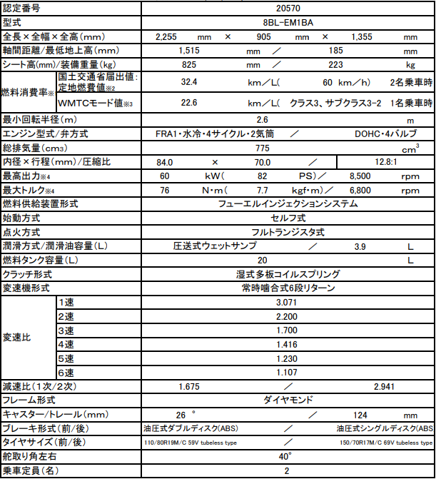 ※1:装備重量は、燃料・潤滑油・冷却水・バッテリー液を含む総重量となります