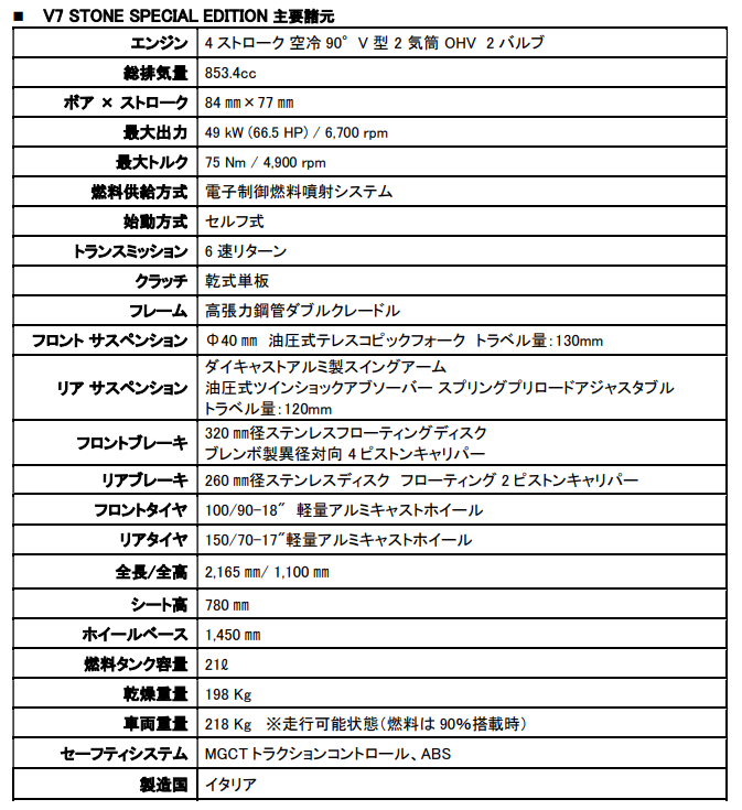 力強い外観とパフォーマンスを向上させた V7 ストーンの特別仕様車