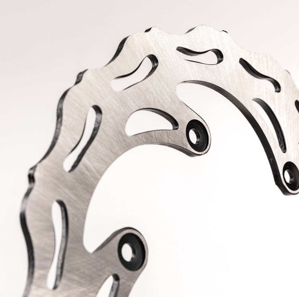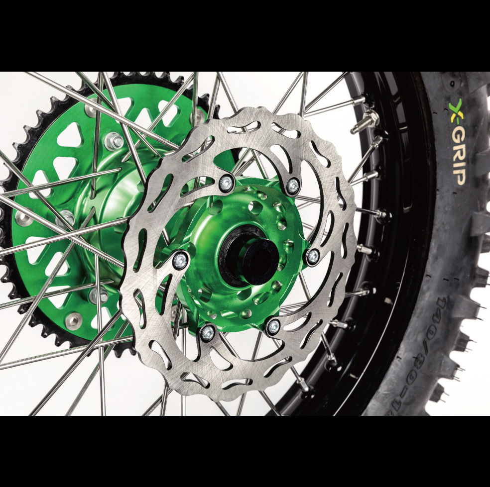 KTM、HUSQVARNAをはじめとした海外レーサー車両適合。より過酷な状況下でも制動力を失うことなく機能し続けることが求められるレーサー車両のために開発された、メーカー純正品比30%強化のディスクローター。
