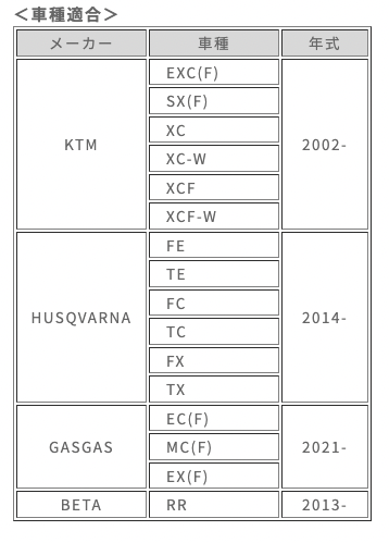 適合: KTM/HUSQVARNA/BETA下記参照