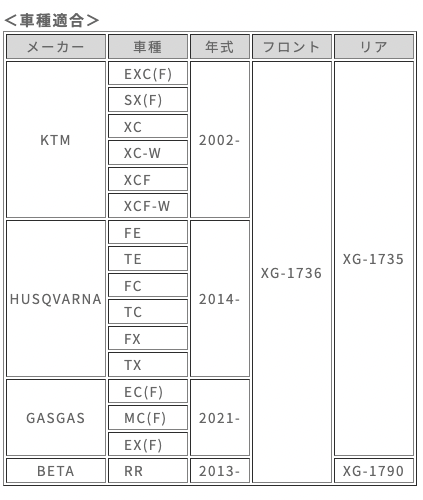 適合: KTM/HUSQVARNA下記参照