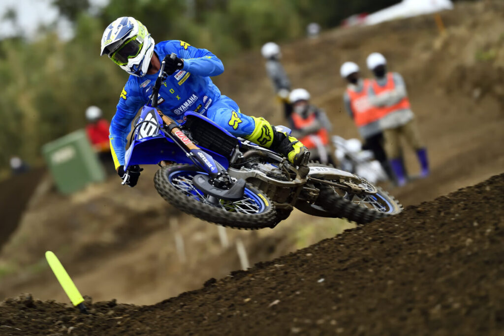 2022年から「YAMAHA FACTORY RACING TEAM」に加入したウィルソン選手は、スタンダードの「YZ250F」を駆り、開幕戦のトリプルヒートで3連勝を達成すると、第2戦関東大会のヒート1では複数回の転倒を喫しながらの逆転勝利など連勝記録を伸ばし、4戦を終えて9連勝。この時点でランキング2位の浅井亮太選手(ヤマハ)に123ポイント差をつけており、第5戦の両ヒートで優勝すれば、ライバルの結果に関係なくチャンピオンが決定する状況でした。