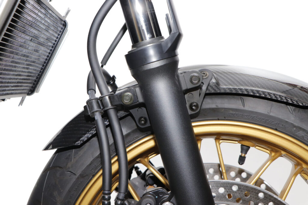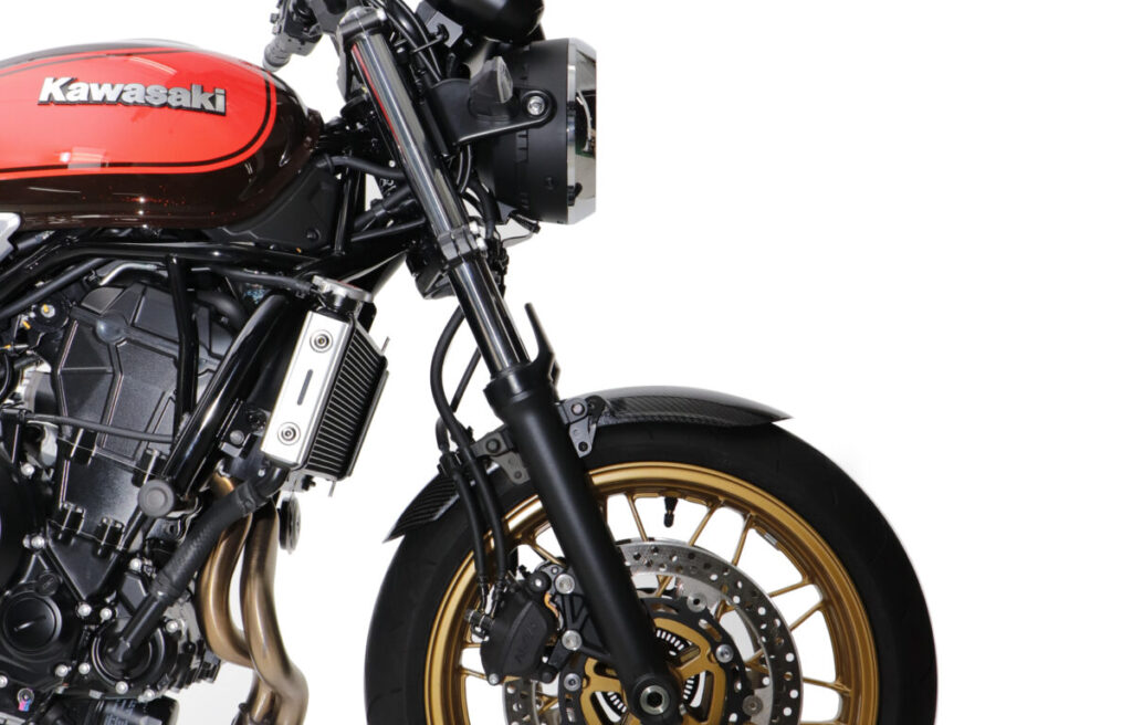 株式会社アクティブは、ドライカーボン製品ブランドネクスレイのZ650RS ドライカーボンフロントフェンダーを発売する。圧倒的な軽さと高剛性を併せ持つ高品質な日本製のカーボンプリプレグ(増厚炭素繊維)を採用し、美しさと軽さを損なわずに長期間使用できる特殊保護コーティングを施した製品となっている。特殊な薄膜のクリアコーティングでドライカーボンの質感を生かし、レーシングマシンの風合いを再現したセミグロスコーティングと、深みのある保護コーティングが綾織模様の高級感を引き立たたせるスモークブラックコーティングの2種をラインナップ。価格は、セミグロスが41,800円、スモークブラックが38,500円(いずれも税込)である。