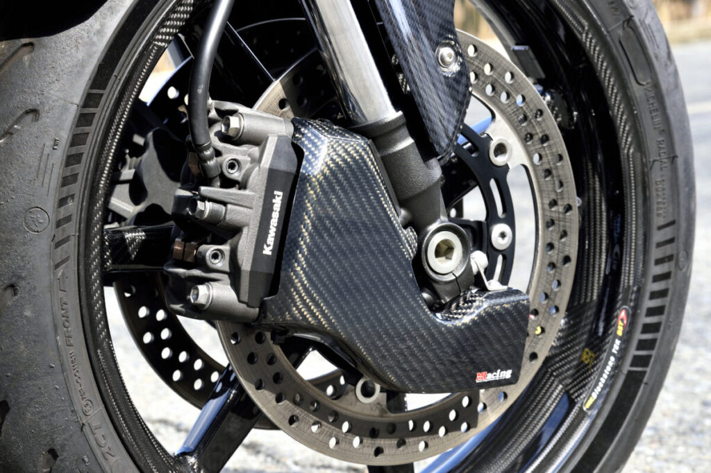 走行風でブレーキキャリパーを冷却し、安定したブレーキ性能をキープする。