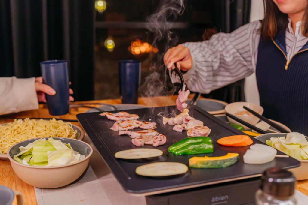 abien MAGIC GRILLは、独自技術のサーキットヒーターをホットプレートに採用し、デザイン性・機能性・利便性を兼ね備えたホットプレートとなっており、食卓で扱いやすく、さまざまな調理に対応できるため人気を集めている。今回導入される施設では、冬季は降雪や冷え込む日が多いことから外でのBBQを11月末より休止。そのため、室内でBBQのように楽しめる同製品の導入が決定した。