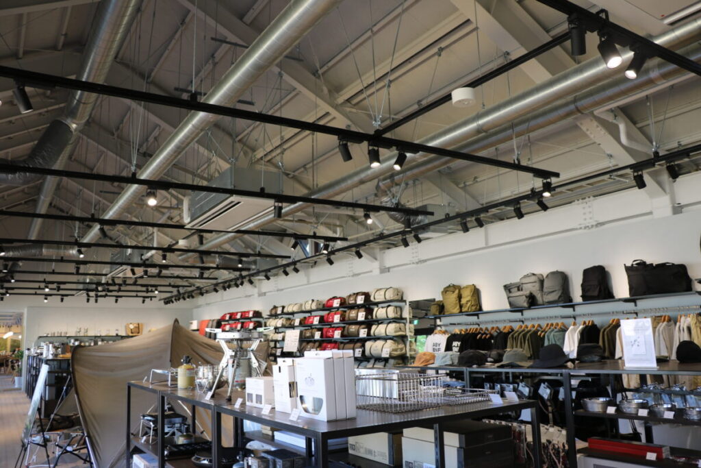 店舗では、テントやシェルターなどのキャンプギアから都会と自然をシームレスにつなぐアパレル、リュックやバックなどのアクセサリーまで幅広くラインナップするほか、店舗限定アイテムの販売も予定。また、店舗の前には広場を併設し、テントやシェルターの設営講習やペグ打ち体験などができるほか、キャンプの醍醐味である焚火を体験できるイベントの開催なども予定しています。