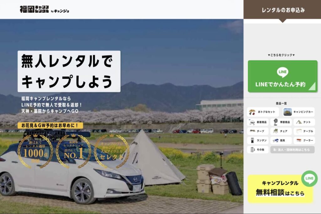 無人レンタルで大人気の「福岡キャンプレンタル」