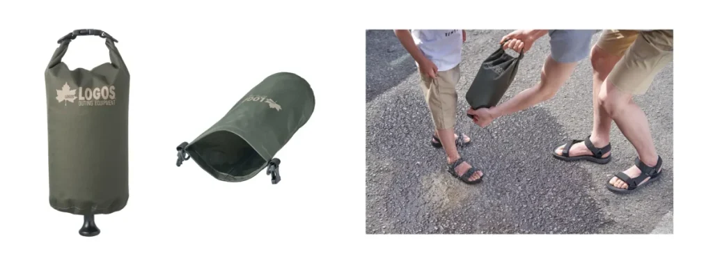 株式会社ロゴスコーポレーションが展開するアウトドアブランドの「LOGOS」は、キャンプ場や外あそびで手軽に使えるポケットサイズのシャワー「エアライトシャワー・mini」を、2022年より発売した。本体に水を入れ、上部の口を閉じて密閉し、バルブをひねるとシャワーが出るというもの。キャンプ場での洗い物はもちろん、砂浜での手足の砂を洗い落とす時などに大活躍する。