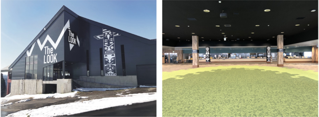 4月29日オープンのThe LOOKの壁面には、Alpen Outdoorsシンボルのトーテムポールが描かれ、キャンプ気分を盛り上げます。400人収容可能な室内もアウトドアテイストにリニューアルし、有名メーカーの最新テントの展示も予定しています。
