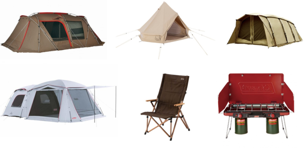 レンタルグッズは、Alpen Outdoorsならではの充実の品揃え!コールマン、スノーピーク、ロゴス、オガワ、ノルディスク、ムラコ、DODなど、キャンプ場で実際に設営して使用感を試せます。レンタルグッズは、The BASE内に展示されており、当日その場で見て、気に入ったアイテムを借りることもできます。