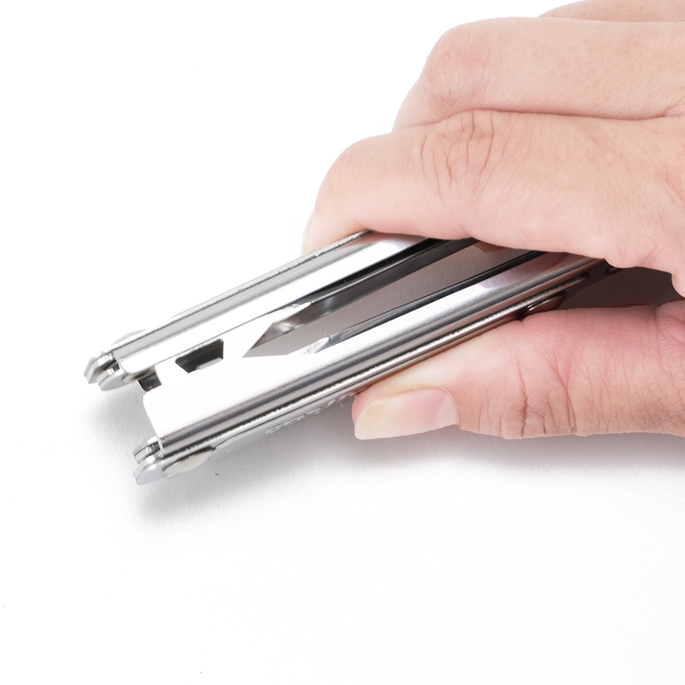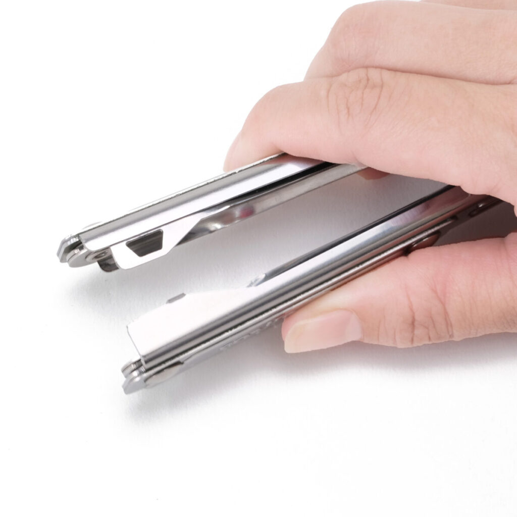 アングルマスターの代名詞となった折りたたみ機能には、 ホールド機構を追加。 折りたたんだ後さらに開かないようにホールドすることでさらなるコンパクトさを追求しました。 折りたたみ時の長さはたったの 14cm、 横幅はわずか2.5cm と超スリム。 ユーザーの 「ロックが欲しい」 「もっとがっちりつかみたい」 という声を反映した、 見た目も機能もワンランク上の、 新しいフォールディングトングです。