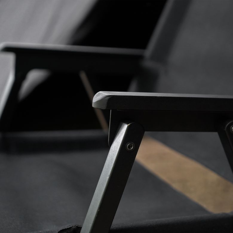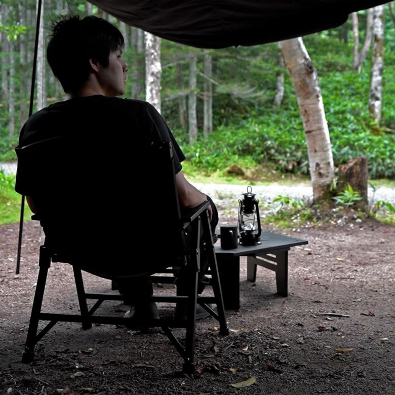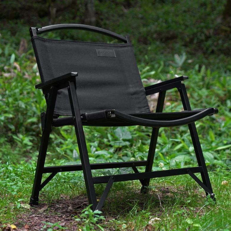 ブラック好きにはたまらない激渋なアウトドアチェアに仕上がっている。