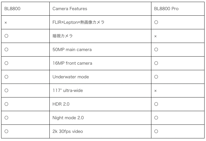 BL8800とBL8800Proの唯一の違いは、リアカメラです。
