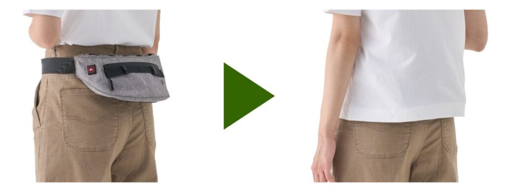 目立ちにくいスリム設計で、衣服を被せるとスマートに隠れてほぼ普段通りの見た目に。