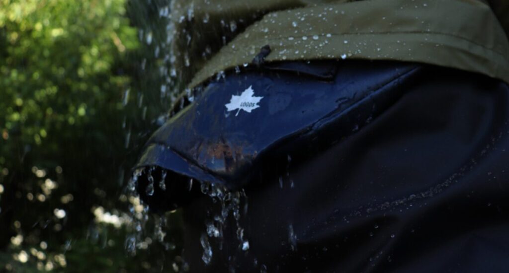ファンの吸気口を下向きに配置することで雨水が入りにくい構造を実現。レインウエアと組み合わせると、雨を防ぎながらレインウエアの内側の湿気やべたつきを軽減できて快適。