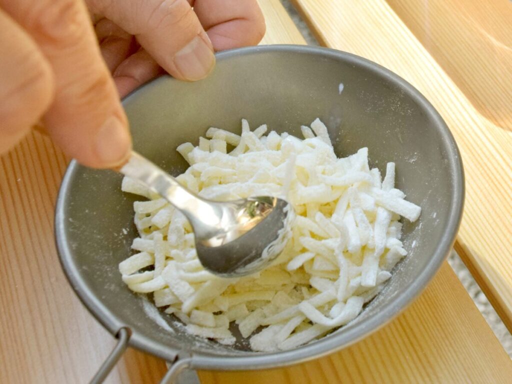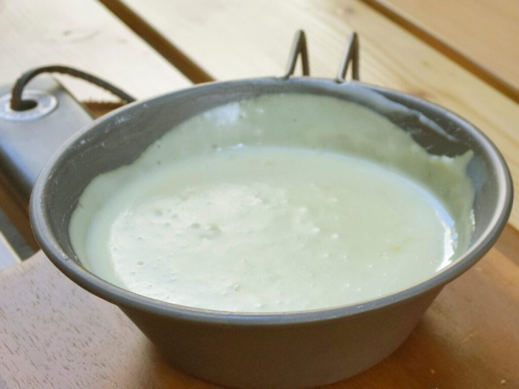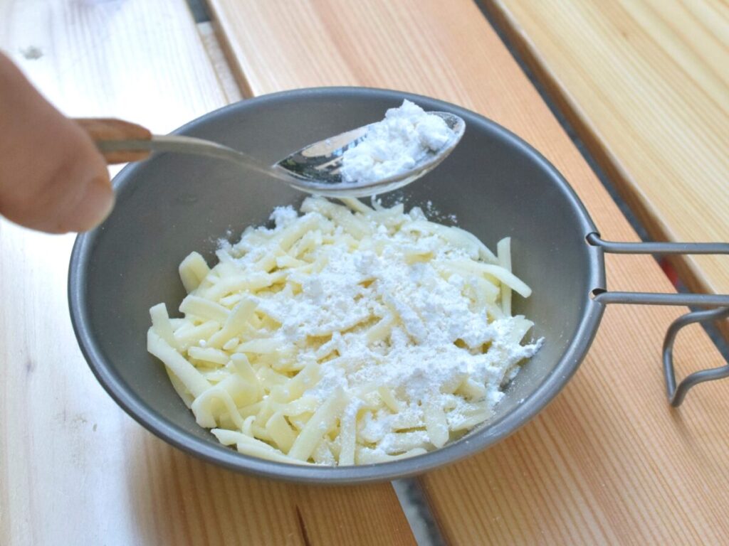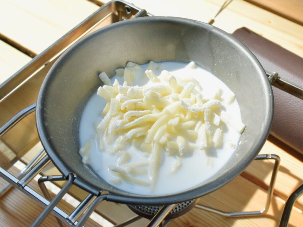 チーズディップの作り方はいたってシンプル。チーズと小麦粉、牛乳を混ぜて火にかけるだけ。