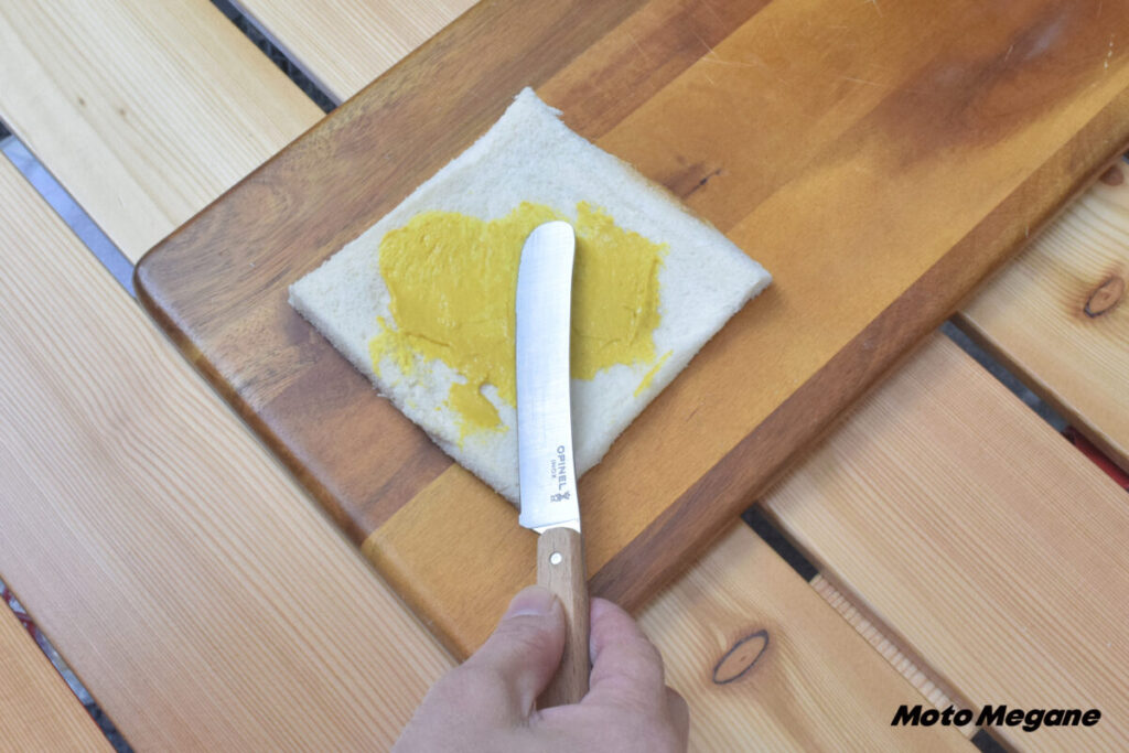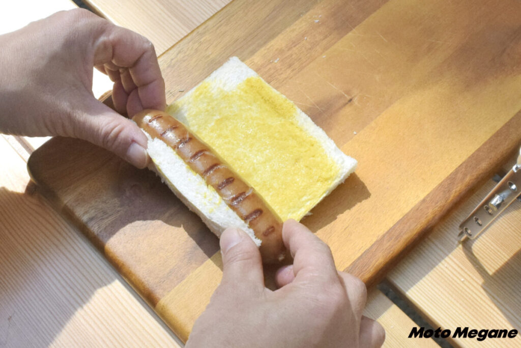 続いて、マスタードをぬりぬり。こちらはお好みで、マヨネーズやケチャップなど、バリエーションを持たせても楽しい。