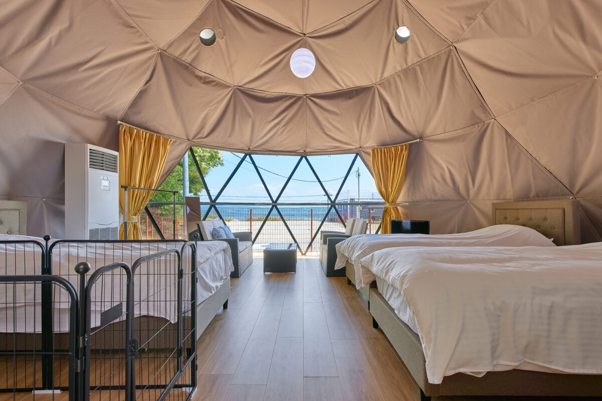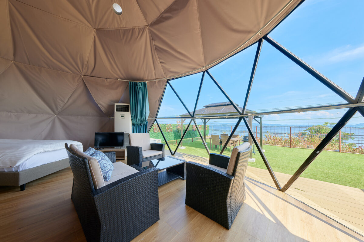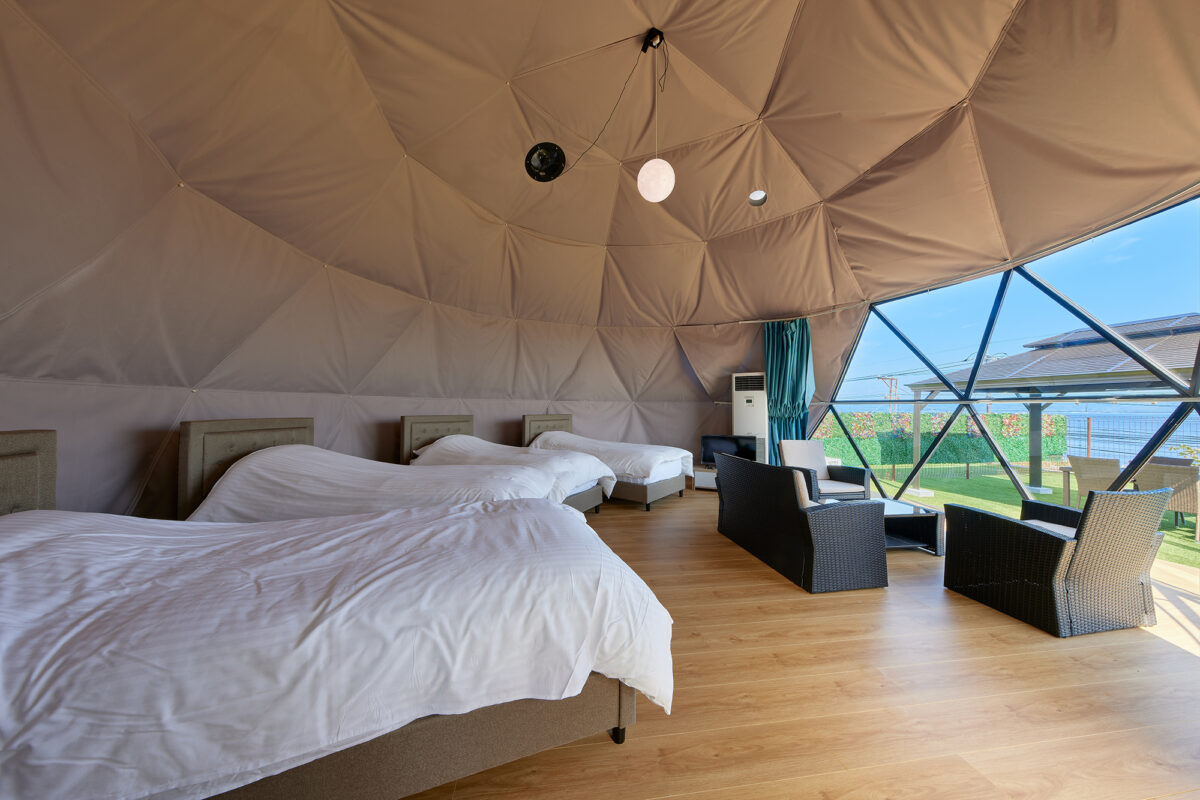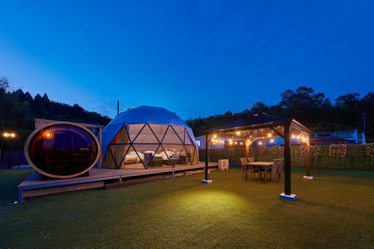 プライベートガーデンを配した全5棟の大型ドームテント