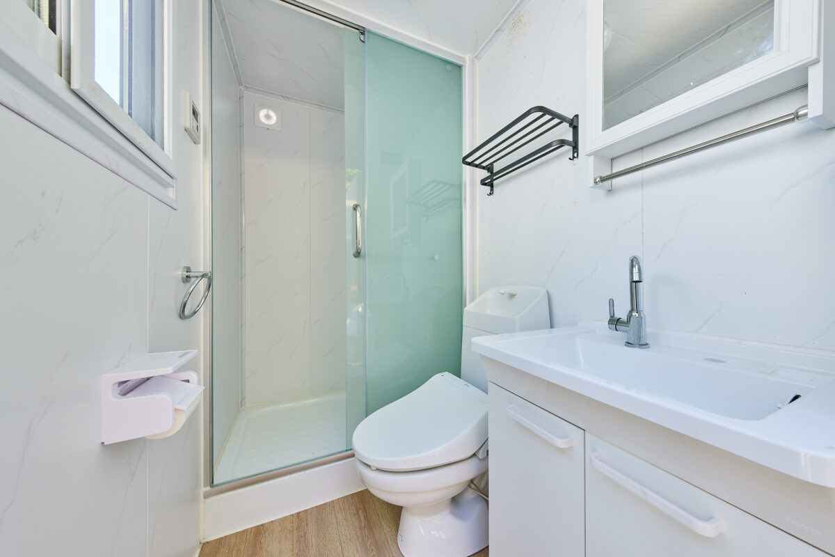 個別シャワーブースにトイレといった水回りも完備しており、女性も子どもも気兼ねなくグランピングを楽しんで頂けるよう充実の専用設備と完全プライベート空間をご用意しております。