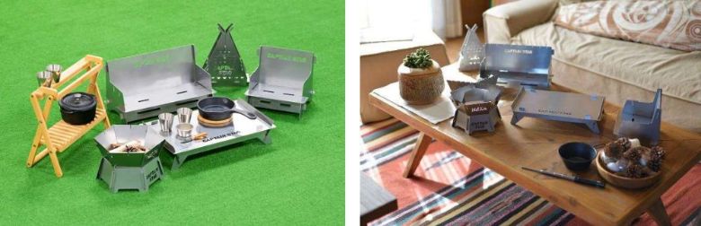 また、今回の製品は、アウトドア製品をミニチュア風にアレンジし、そこに焚き火台などの機能を持たせる遊び心を加えた。小さな箱庭にも置けるイメージで、製品を集めることで、ジオラマのようなミニチュアキャンプサイトとしても楽しめる要素を盛り込んでる。